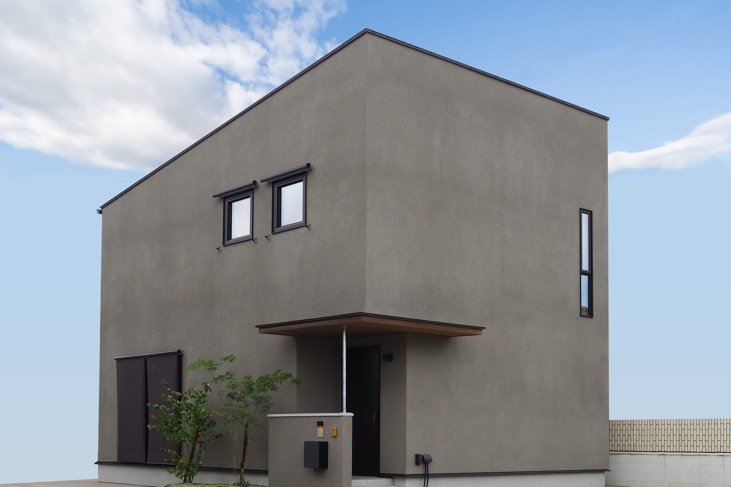 寒い冬でも猫とフローリングでゴロンとくつろぐ、温もりのある家。 時と共に変化していく板張りの外壁と、 まっさらなR垂れ壁の曲線が、どこか優しい印象を与えます。