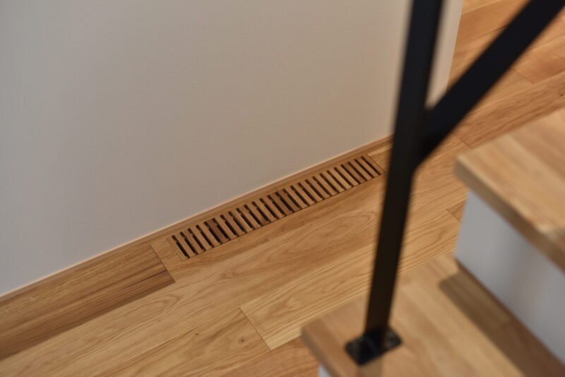 洗練された空間に差し込む吹き抜けの光。 美しさだけではなく、夏涼しく冬暖かい快適な室内に。 落ち着きのある内装には、ほんの少しの個性を加えて。