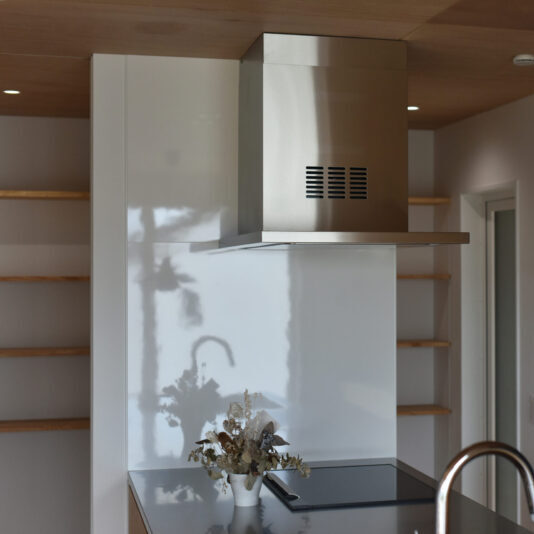 白を基調とした、シンプルなデザイン。 無駄なものは何一つないから、そこに置くインテリアが主役になる。 そこに住む家族がいて、この家が完成する。