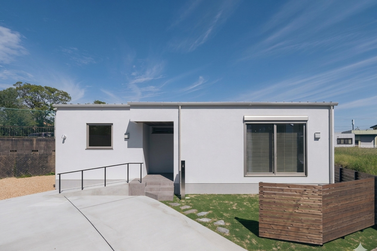ダブル断熱が叶える超高断熱の平屋。 夏も冬も、エアコン1台で一年中快適な暮らしを実現します。 廊下をなくすことで無駄な動線が一切なく、居室も広々使う事が出来ます。