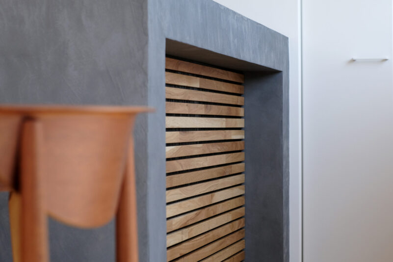 白く統一された内装に自然の光が陰影をつくる。 シンプルでありながら、揺らめく漆喰の凹凸や、R壁の柔らかな曲線が個性を描く。 近代的で美しい、まるでアトリエのような住まい。