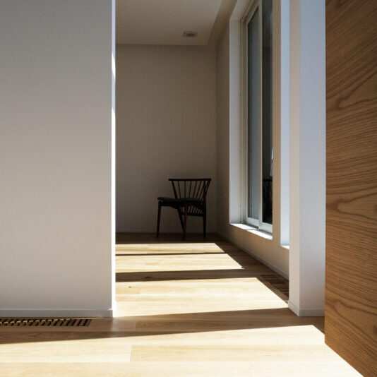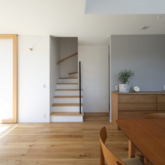 洗練された空間に差し込む吹き抜けの光。 美しさだけではなく、夏涼しく冬暖かい快適な室内に。 落ち着きのある内装には、ほんの少しの個性を加えて。