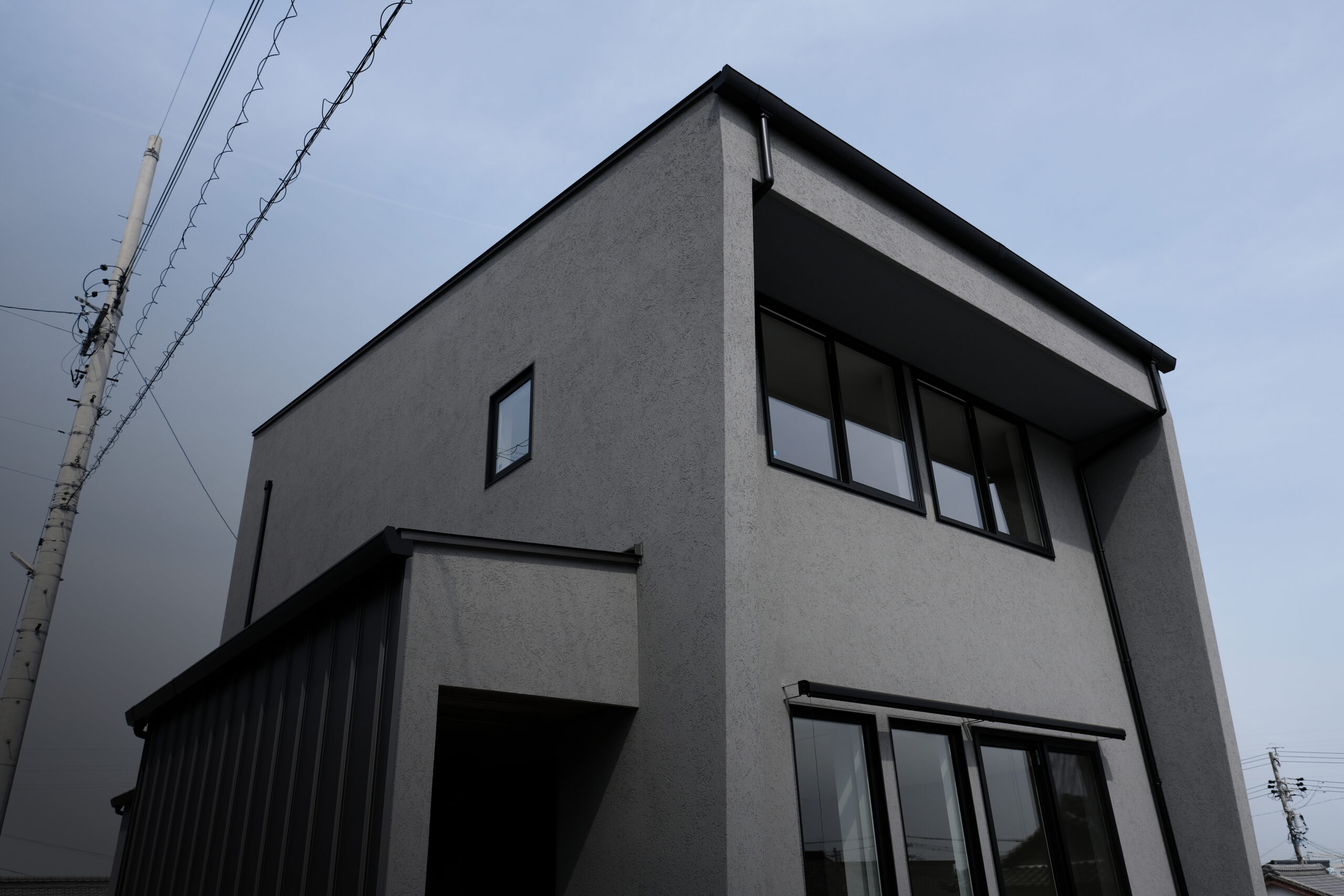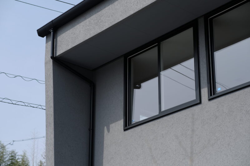 寒い冬でも猫とフローリングでゴロンとくつろぐ、温もりのある家。 時と共に変化していく板張りの外壁と、 まっさらなR垂れ壁の曲線が、どこか優しい印象を与えます。