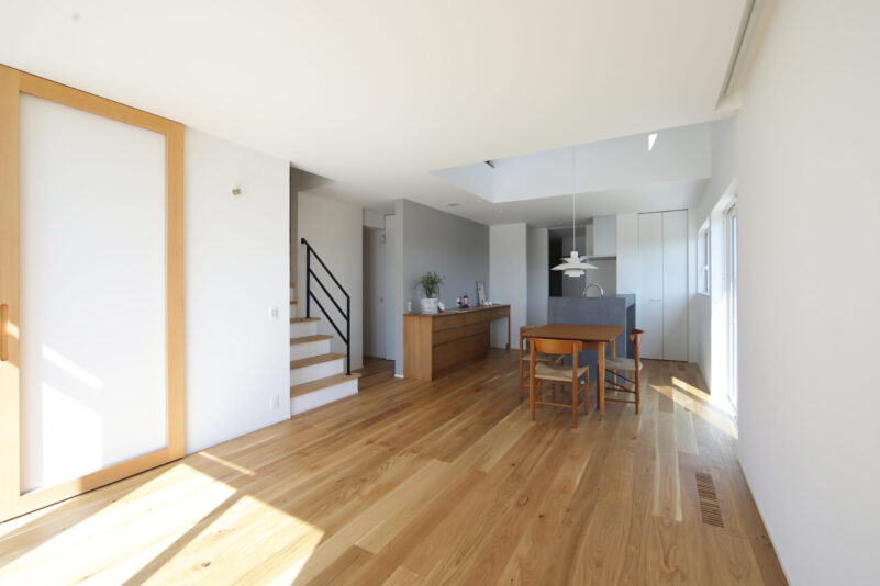白を基調とした、シンプルなデザイン。 無駄なものは何一つないから、そこに置くインテリアが主役になる。 そこに住む家族がいて、この家が完成する。