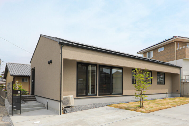 どこにも出かけずに、家の中でアウトドア気分を楽しめる休日。 リビングと庭が一つの空間となり、沢山の友人と賑やかに過ごす。 コテージのように集える、開放的な平屋。