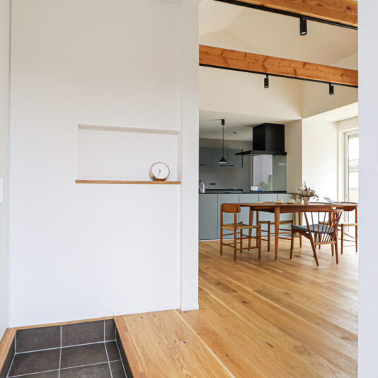 日本家屋の趣と、北欧テイストのやさしい温もりが調和する、和モダンな家。 天然木のさらりとした感触を、目で見て、肌で感じられる。 心地よさとデザインがバランスよく実現しました。
