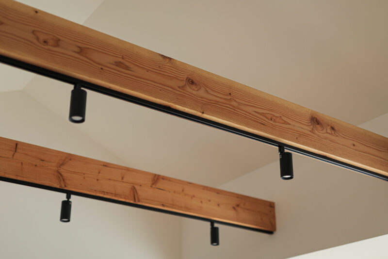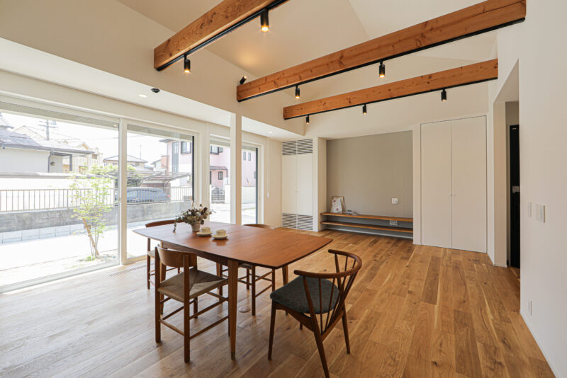 梁が見える勾配天井の家