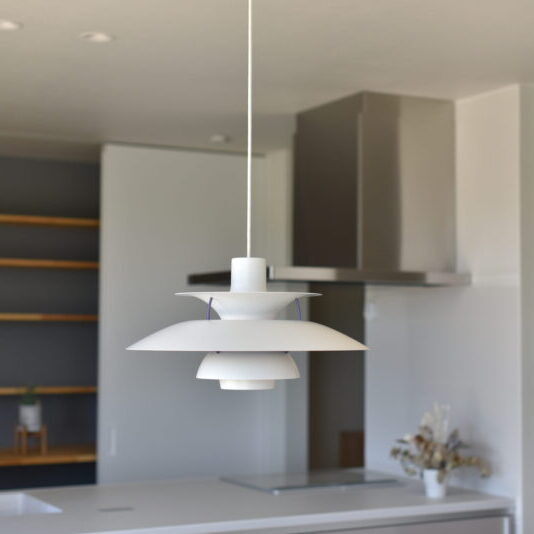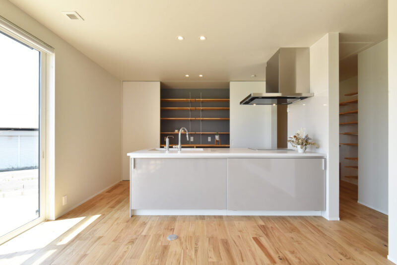 白を基調とした、シンプルなデザイン。 無駄なものは何一つないから、そこに置くインテリアが主役になる。 そこに住む家族がいて、この家が完成する。