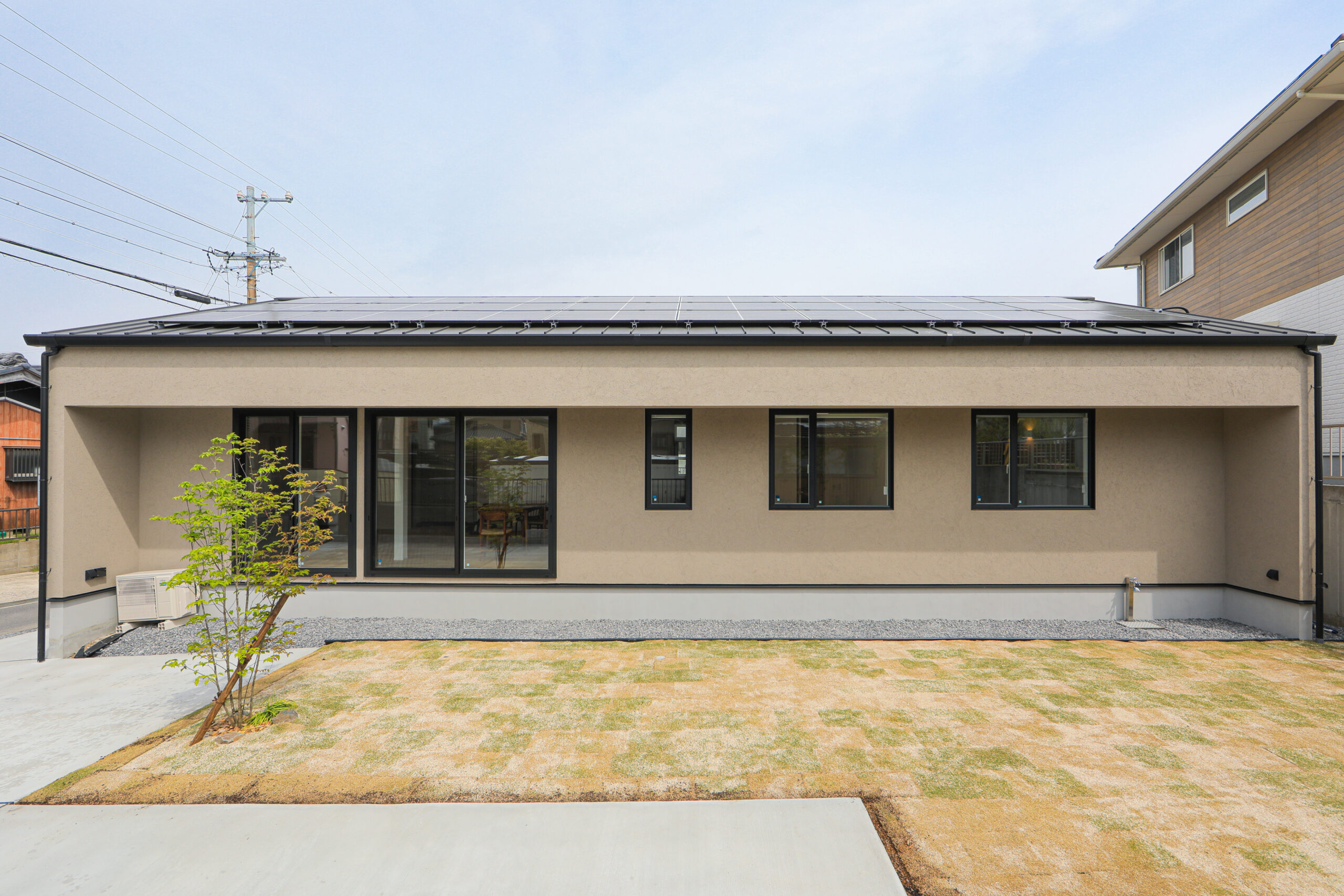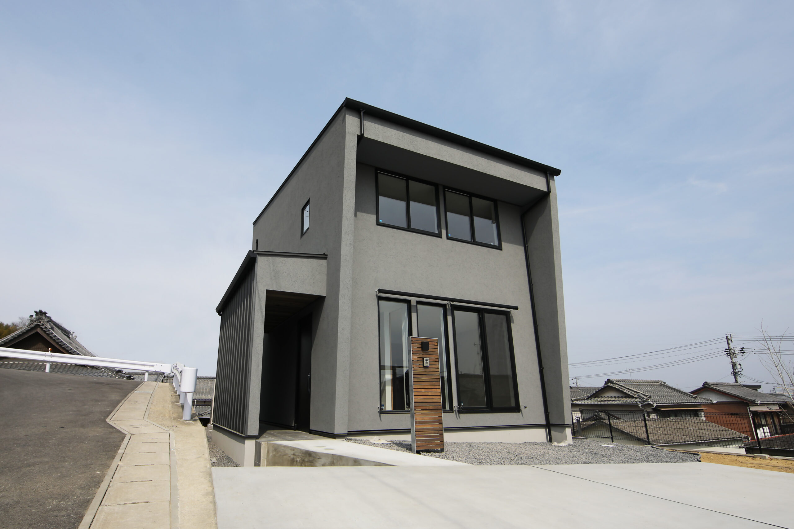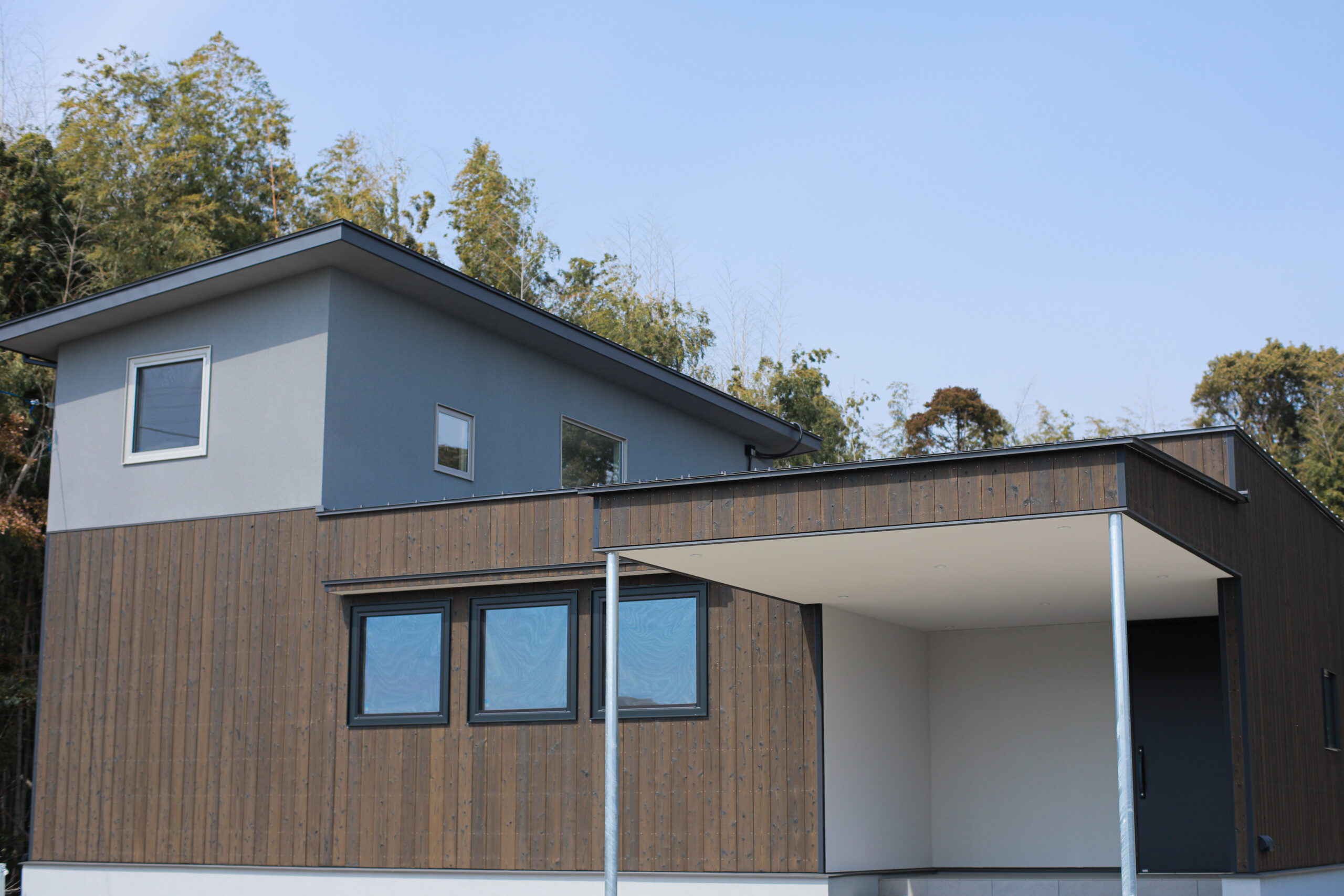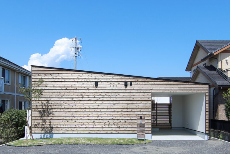 性能も間取りもデザインも、すべてを叶える。 板張りと塗り壁を組み合わせたモダンな外観は、 緑豊かな土地に溶け込みながら、確かな存在感を放ちます。
